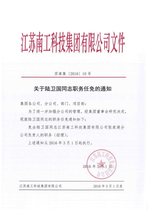 關于陸衛國同志職務任免的通知
