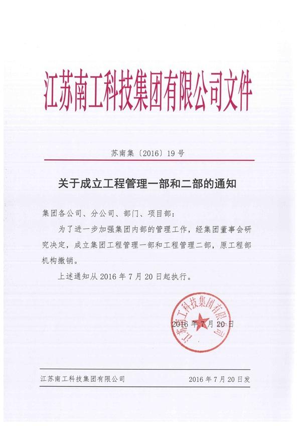 關于成立工程管理一部和二部的通知