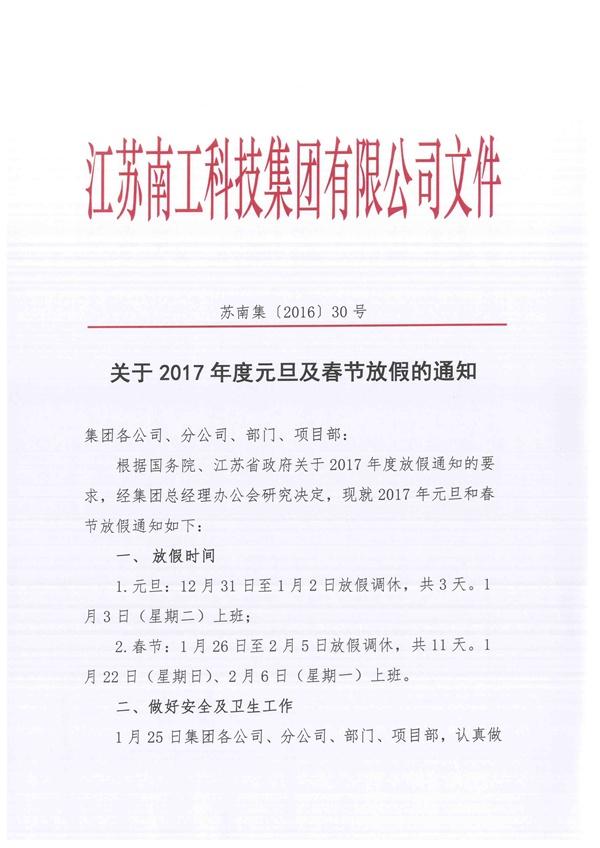 您的位置:集團首頁 >> 新聞中心 >> 集團公告 >> 關于2017年度元旦及春節的放假通知