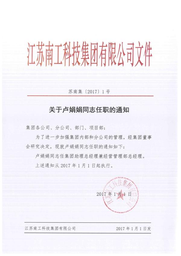 關于盧娟娟同志任職的通知