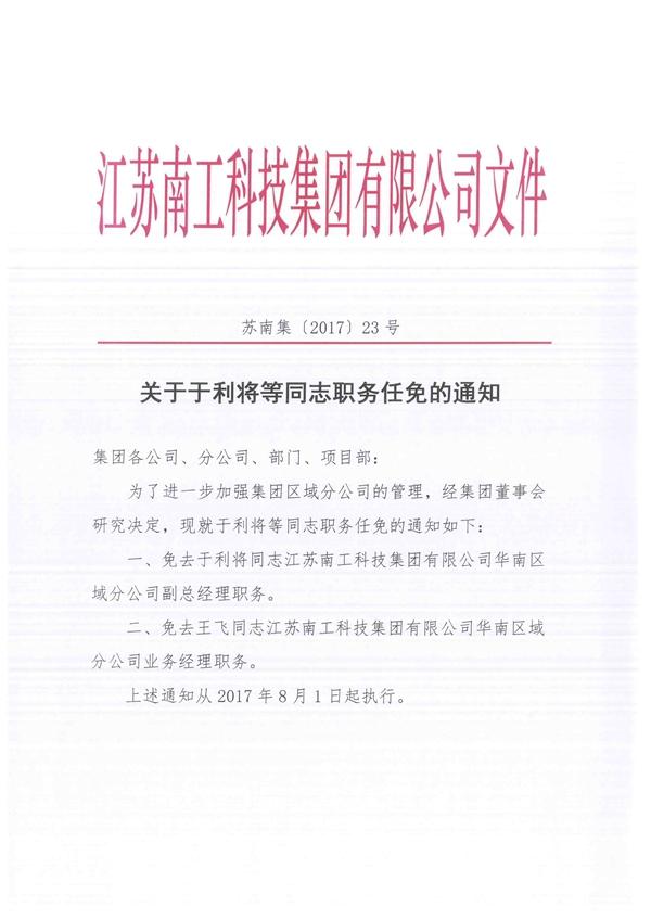 您的位置:集團首頁 >> 新聞中心 >> 集團公告 >> 關于于利將等同志職務任免的通知