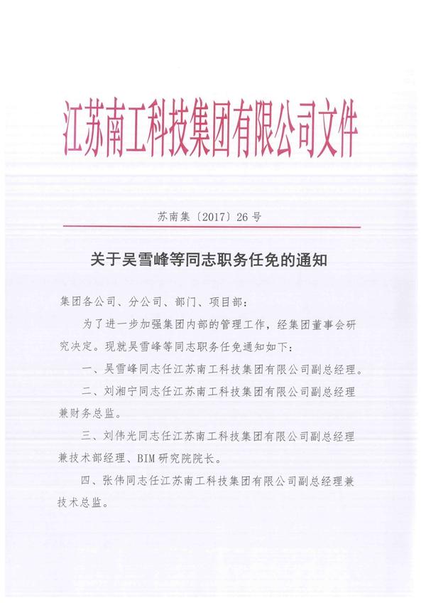 您的位置:集團首頁 >> 新聞中心 >> 集團公告 >> 關于吳雪峰等同志職務任免的通知