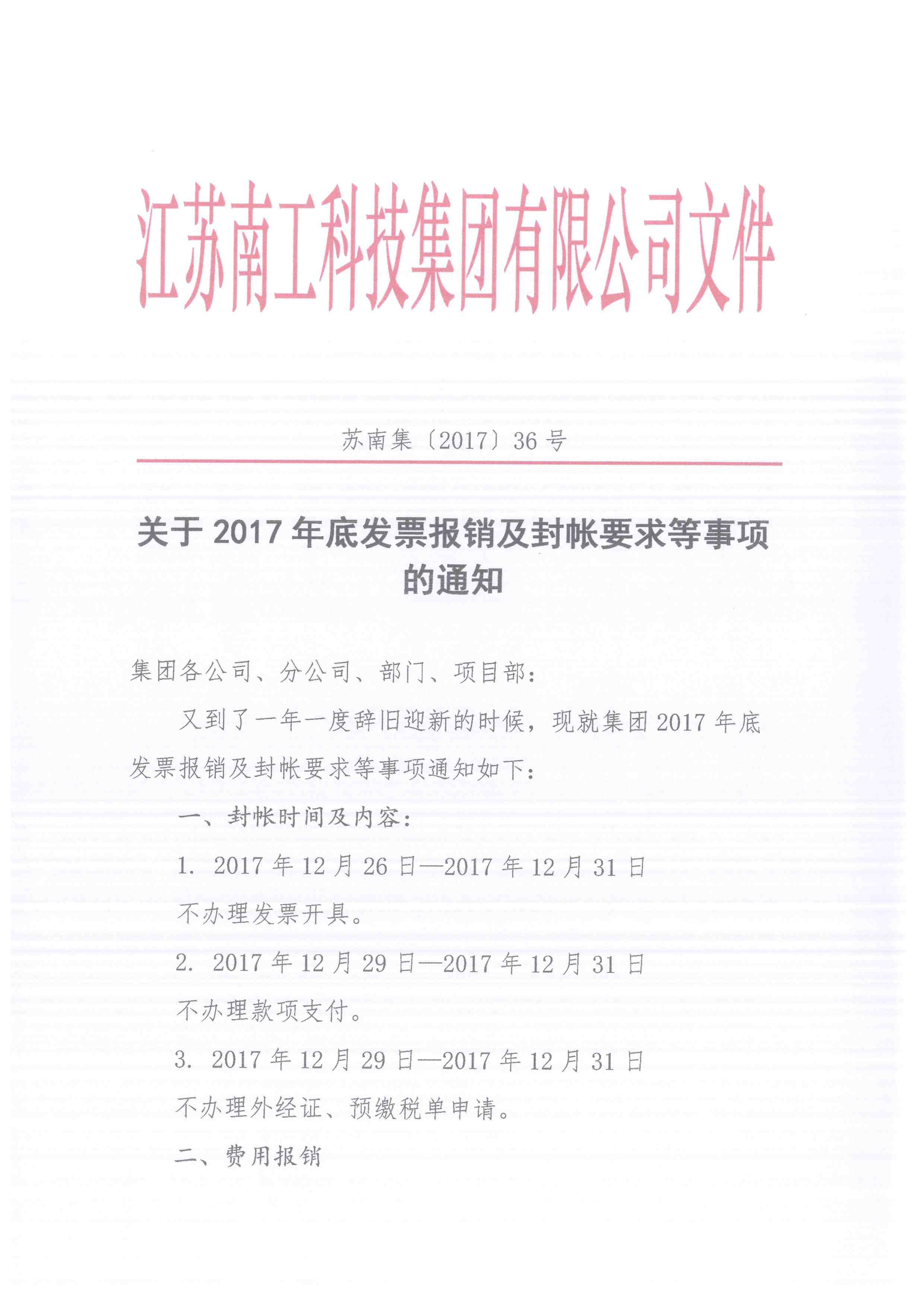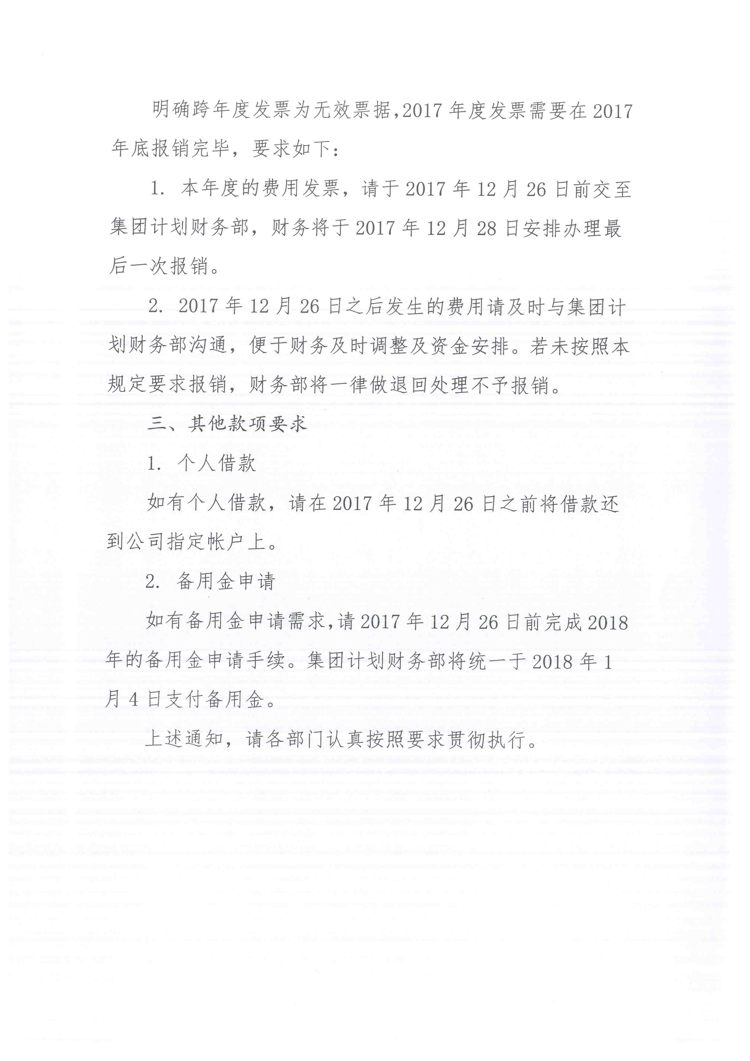 關于2017年底發票報銷及封帳要求等事項的通知