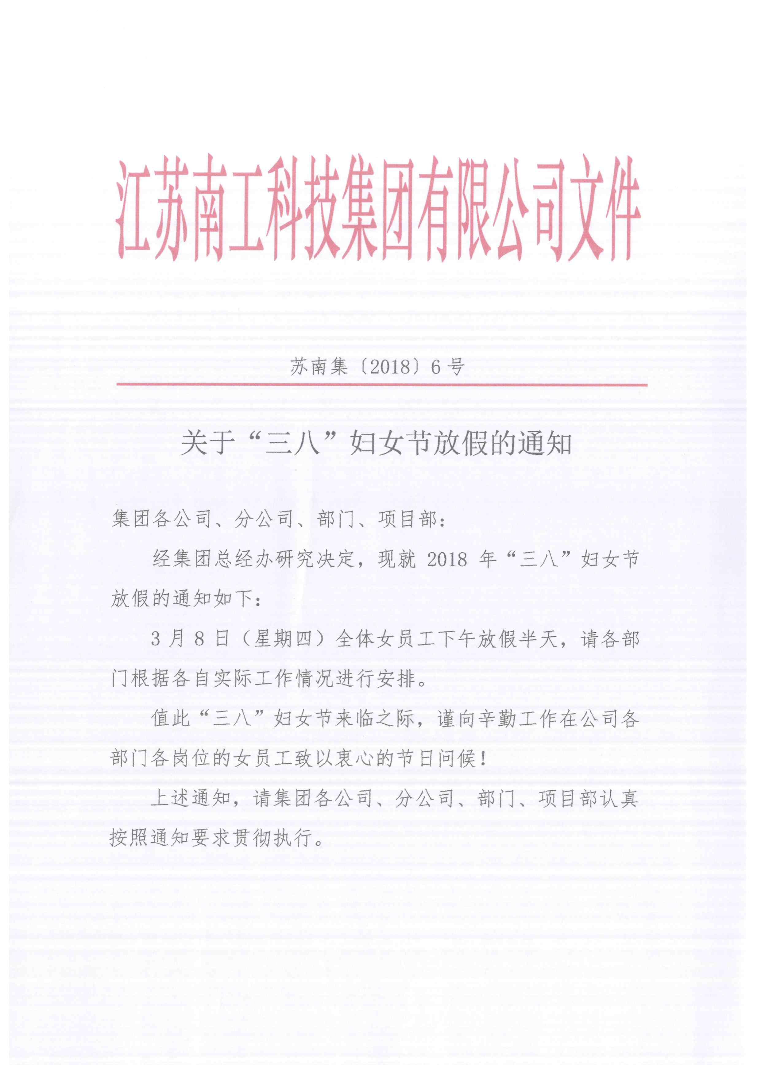 您的位置:集團首頁 >> 新聞中心 >> 集團公告 >> 關于“三八”婦女節放假的通知