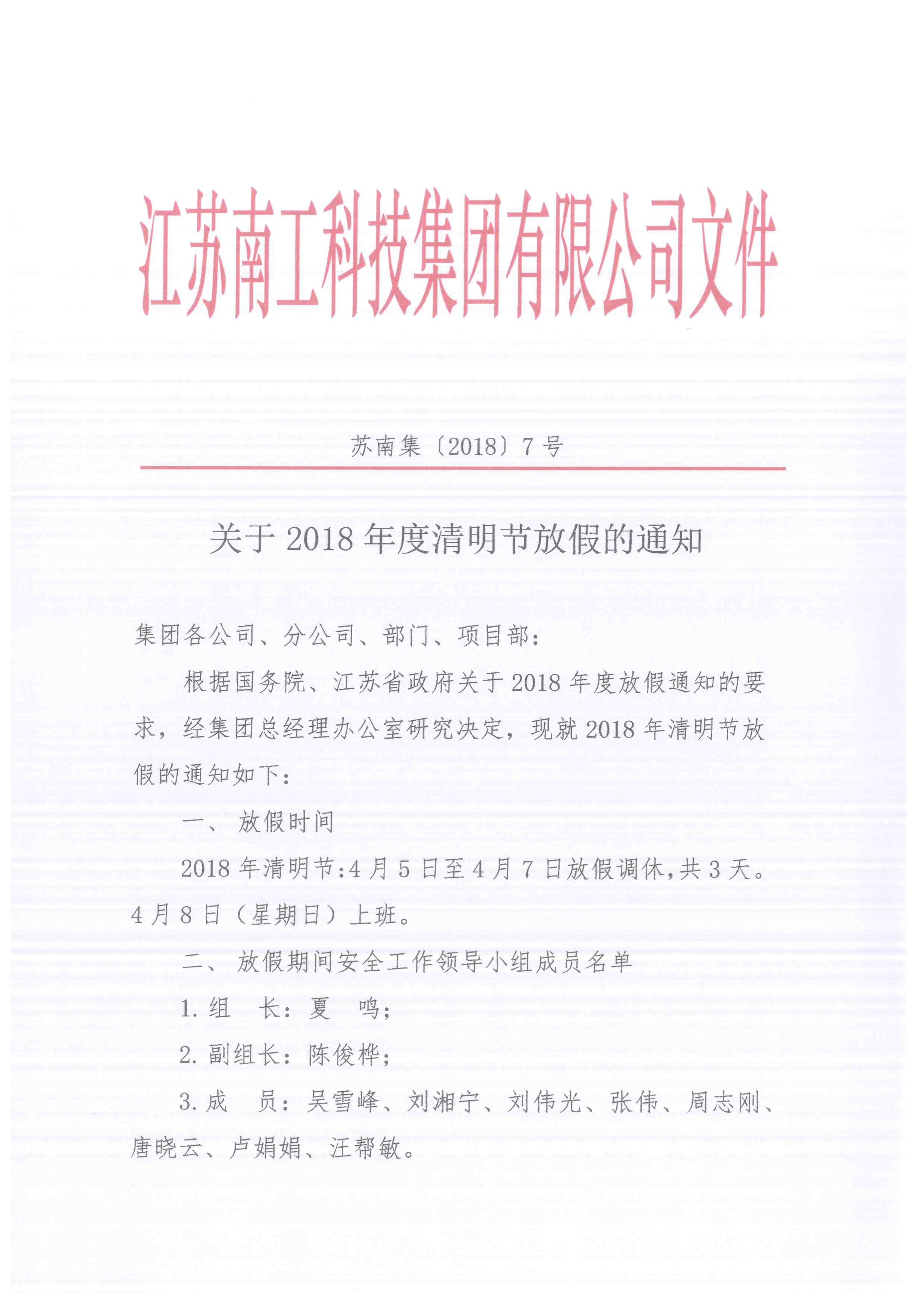 關于2018年度清明節放假的通知