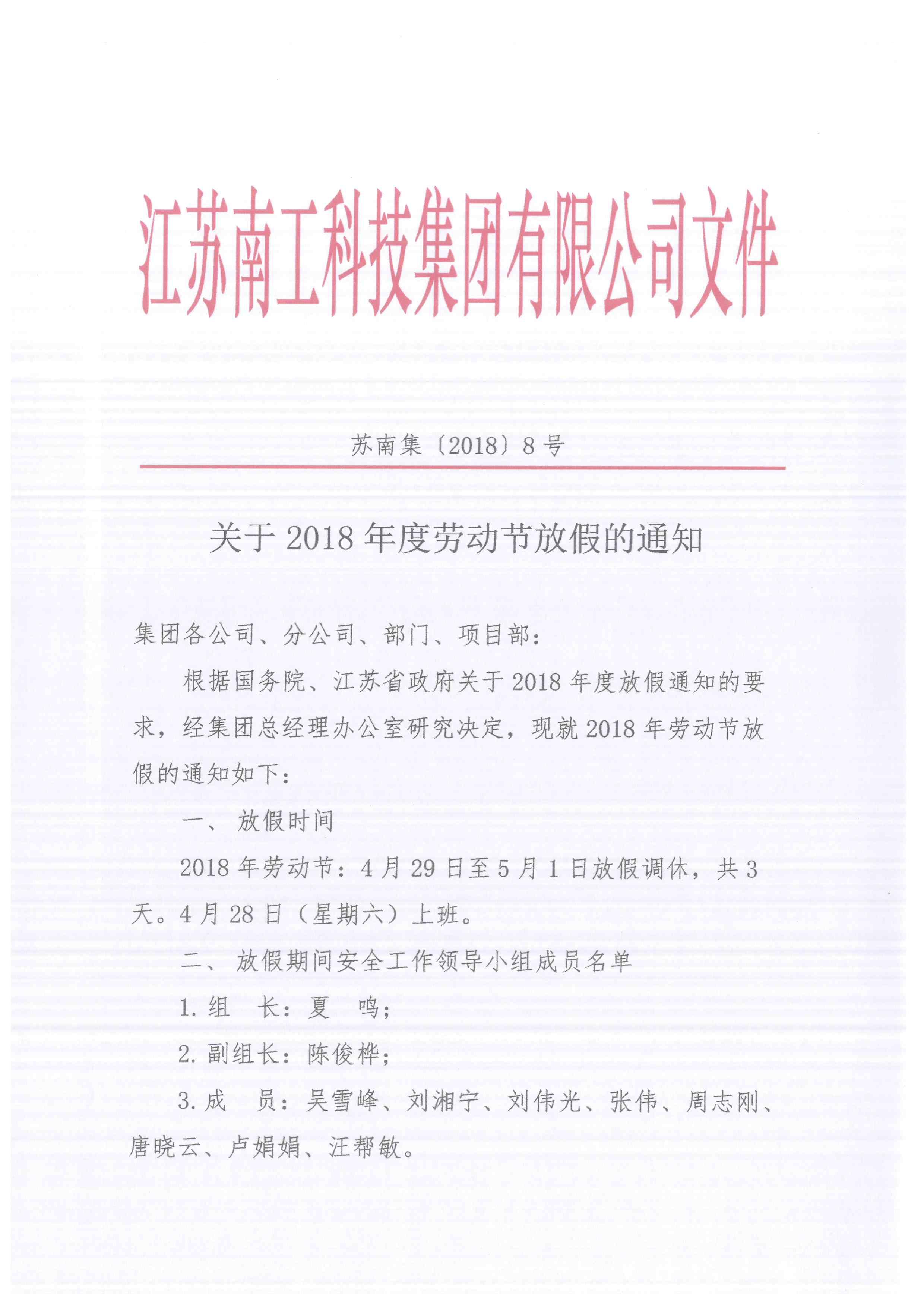 關于2018年度勞動節放假的通知