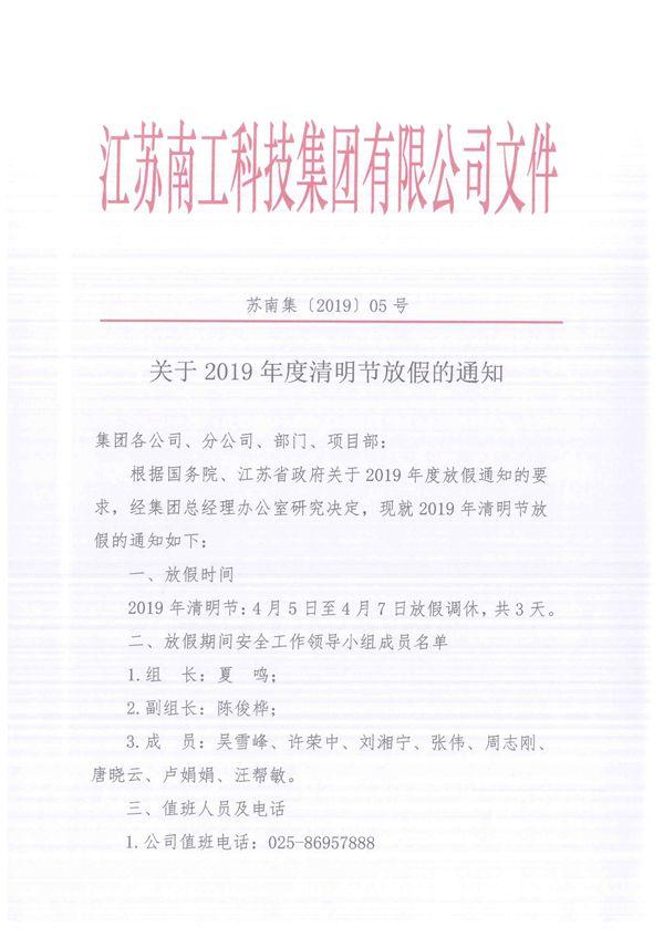 關于2019年度清明節放假的通知