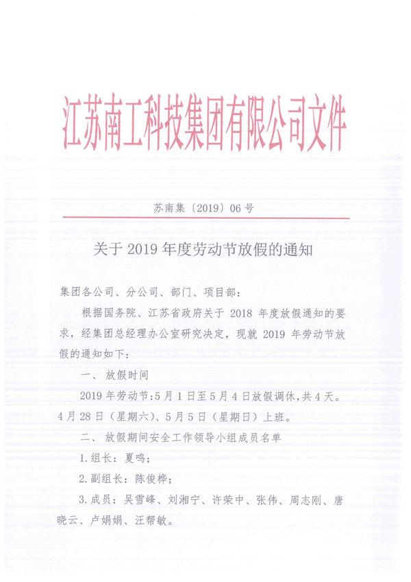 關于2019年度勞動節放假的通知