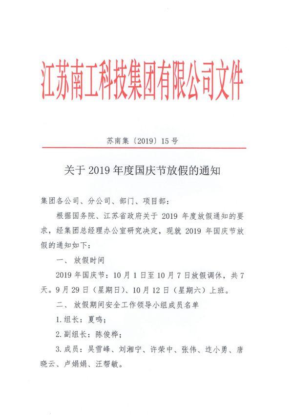 關于2019年度國慶節放假的通知
