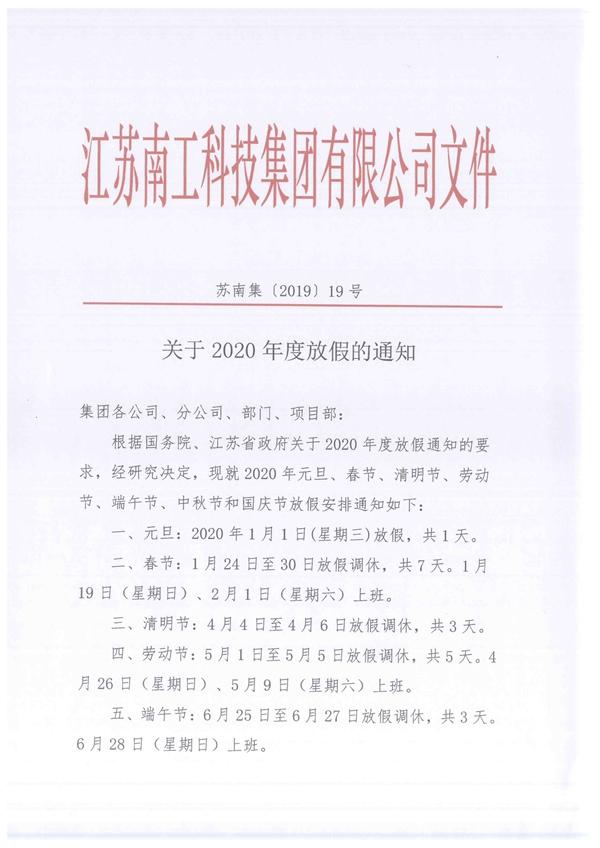 您的位置:集團首頁 >> 新聞中心 >> 集團公告 >> 關于2020年度放假的通知