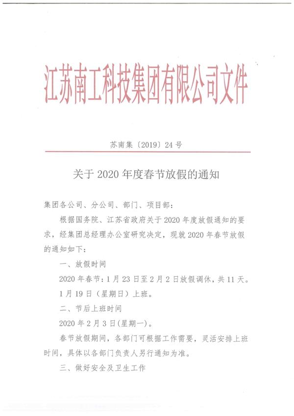 您的位置:集團首頁 >> 新聞中心 >> 集團公告 >> 關于2020年度春節放假的通知