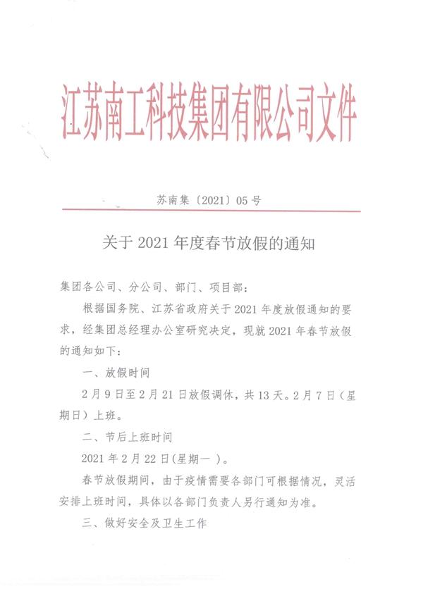關于2021年度春節放假的通知