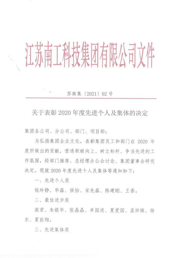 關于表彰2020年度先進個人及集體的決定