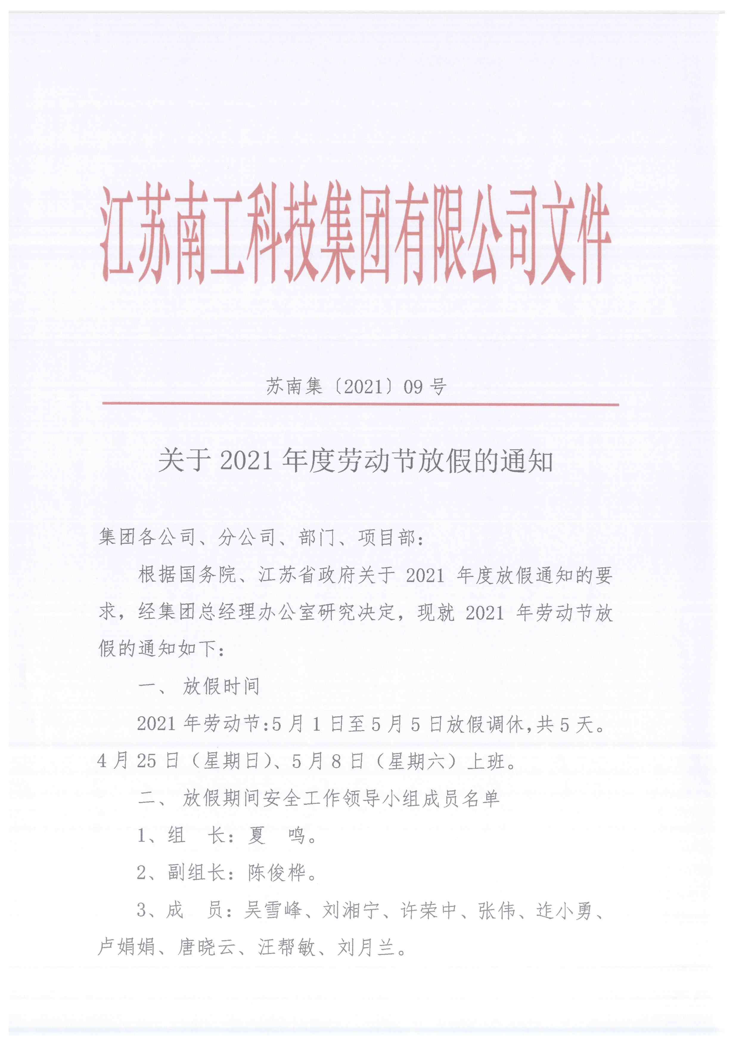 您的位置:集團首頁 >> 新聞中心 >> 集團公告 >> 關于2021年度勞動節放假通知