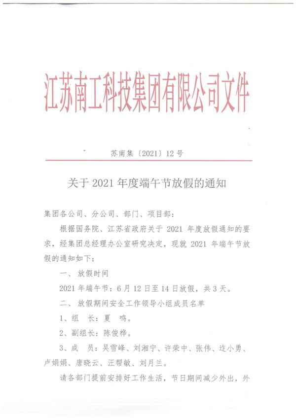 關于2021年度端午節放假的通知