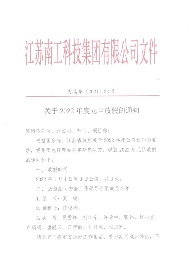關于2022年度元旦放假的通知