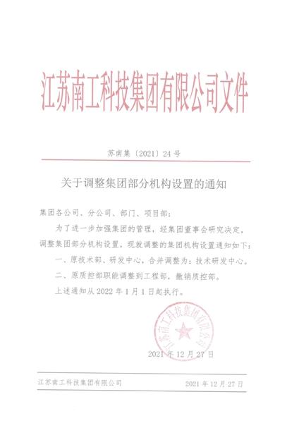 關于調整集團部分機構設置的通知
