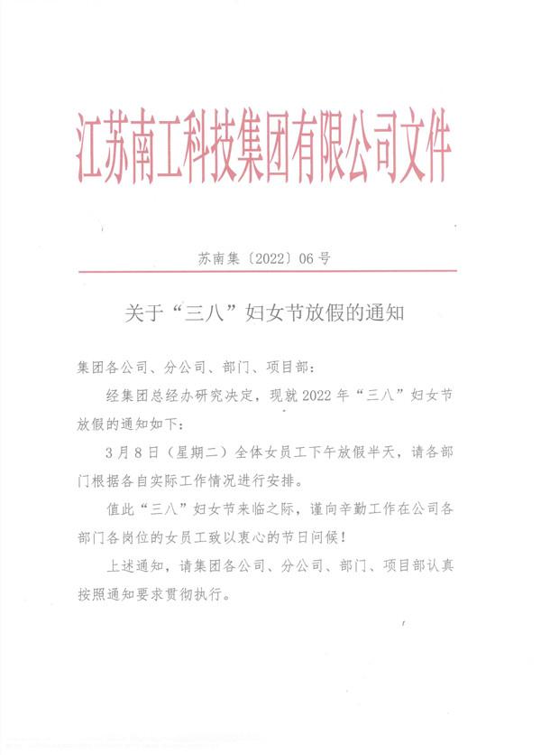 您的位置:集團首頁 >> 新聞中心 >> 集團公告 >> 關于“三八”婦女節放假的通知