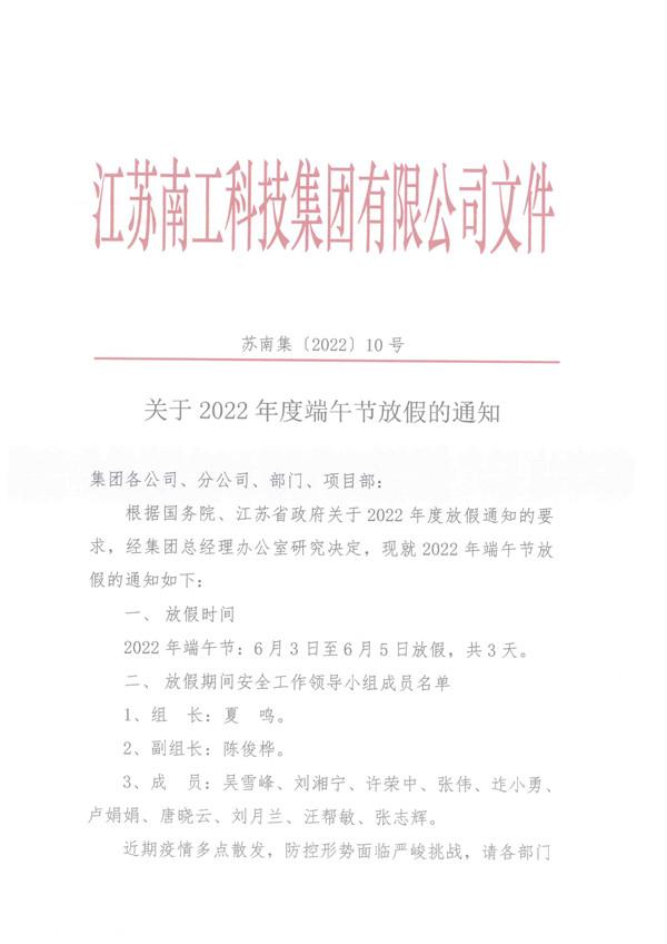 關于2022年度端午節放假的通知