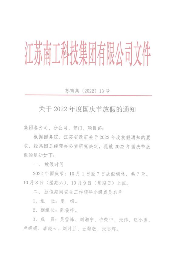 關于2022年度國慶節放假的通知