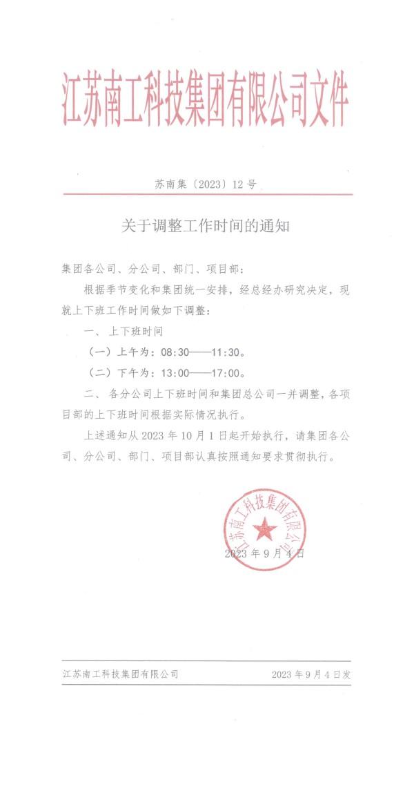 關于調整工作時間的通知