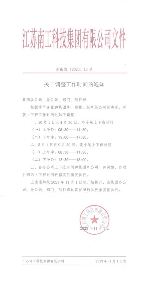 關于調整工作時間的通知