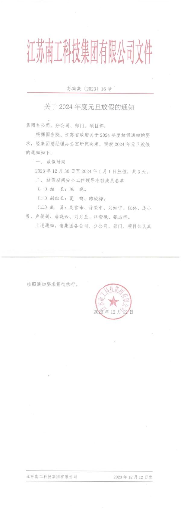 您的位置:集團首頁 >> 新聞中心 >> 集團公告 >> 關于2024年度元旦放假的通知