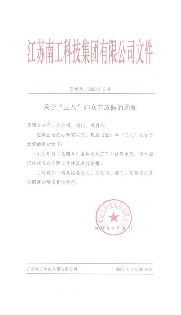 您的位置:集團首頁 >> 新聞中心 >> 集團公告 >> 關于“三八”婦女節放假的通知