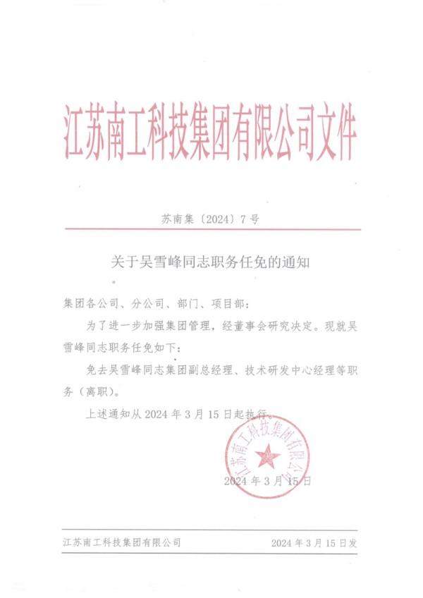 您的位置:集團首頁 >> 新聞中心 >> 集團公告 >> 關于吳雪峰同志職務任免的通知
