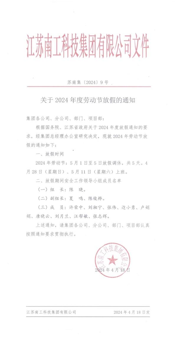 您的位置:集團首頁 >> 新聞中心 >> 集團公告 >> 關于2024年度勞動節放假的通知