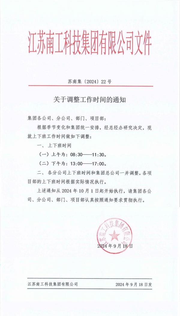 關于調整工作時間的通知