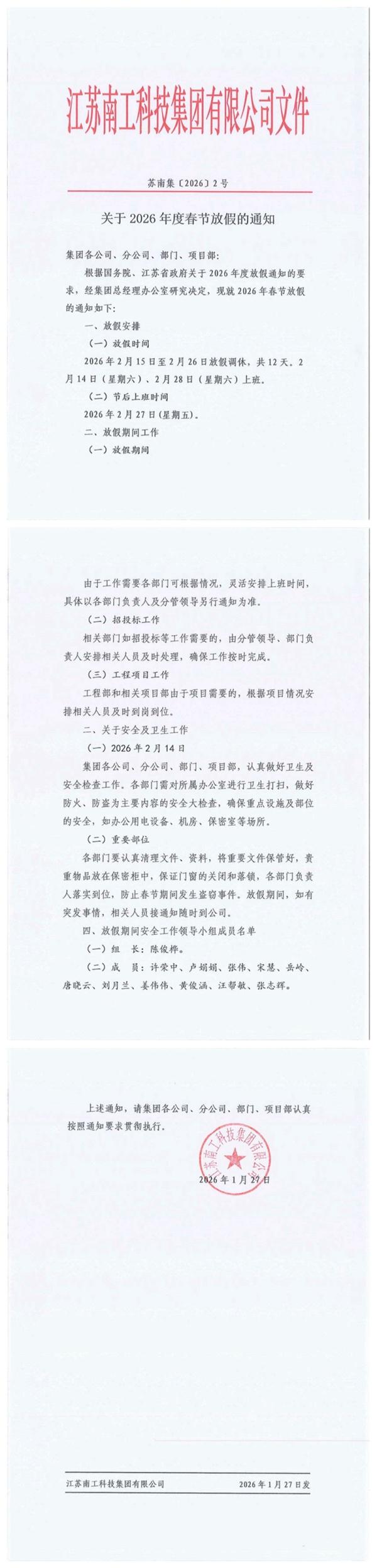 您的位置:集團首頁 >> 新聞中心 >> 集團公告 >> 關于2026年度春節放假的通知