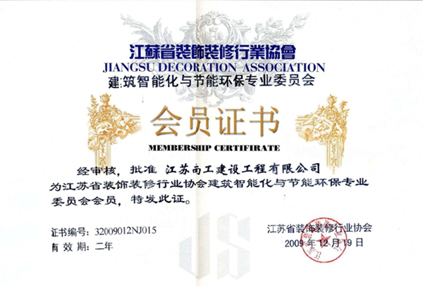 您的位置:集團首頁 >> 走進南工 >> 企業榮譽 >> 行業協會 >> 江蘇省建筑智能化與節能環保專業委員會證書
