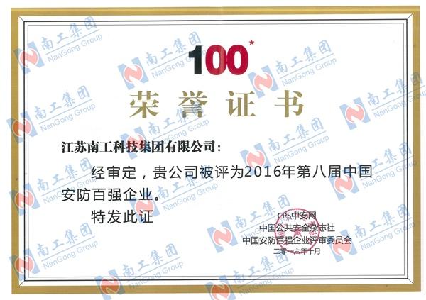 安防百強企業榮譽證書