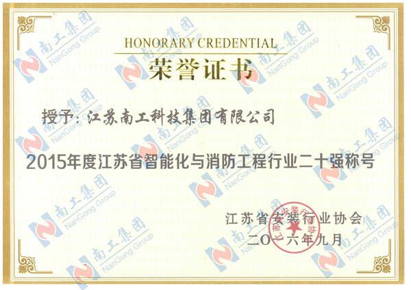 您的位置:集團首頁 >> 走進南工 >> 企業榮譽 >> 企業榮譽 >> 2015年度江蘇省智能化與消防工程行業二十強