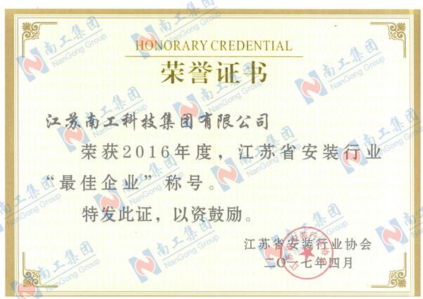 2016年度江蘇省安裝行業“最佳企業”