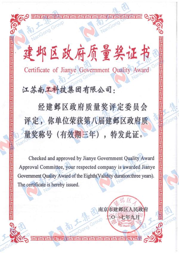 您的位置:集團首頁 >> 走進南工 >> 企業榮譽 >> 企業榮譽 >> 第八屆建鄴區政府質量獎