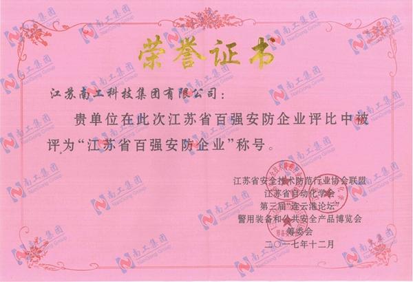 您的位置:集團首頁 >> 走進南工 >> 企業榮譽 >> 企業榮譽 >> 江蘇省安防百強企業榮譽證書