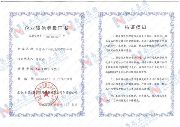 您的位置:集團首頁 >> 走進南工 >> 企業榮譽 >> 企業榮譽 >> 企業AAA資信等級證書