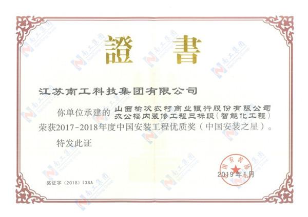 “中國安裝之星” 獲獎工程——山西榆次農村商業銀行股份有限公司