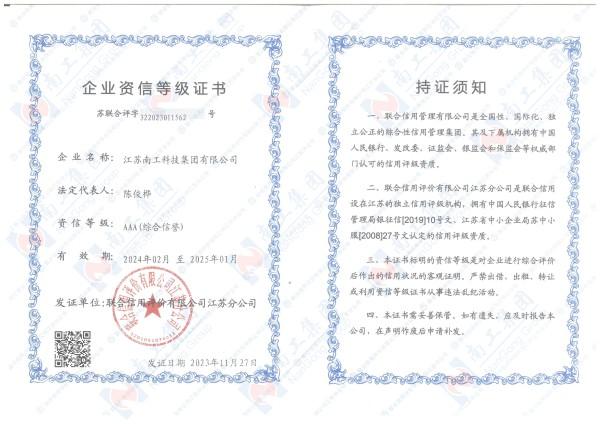 您的位置:集團首頁 >> 走進南工 >> 企業榮譽 >> 企業榮譽 >> AAA資信等級證書