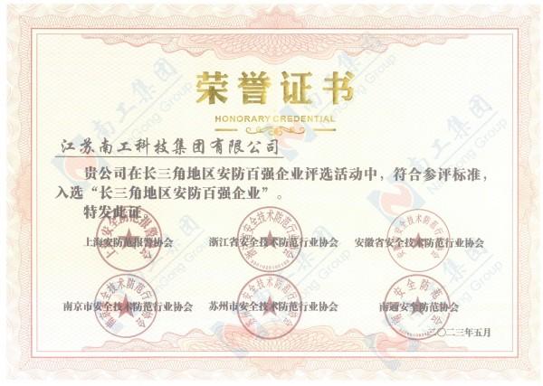 您的位置:集團首頁 >> 走進南工 >> 企業榮譽 >> 企業榮譽 >> 長三角地區安防百強企業(證書)