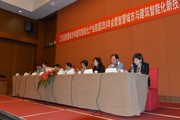 2014年5月9日,江蘇省智慧城市和智能化產業聯盟在安徽池州天平半島大酒店召開。參加會議的有中國安裝協會智能化與消防工程分會會長、江蘇省安裝行業協會智能消防電子專業委員會會長、江蘇南工科技集團有限公司總經理陳曉;江蘇省住建廳科技推廣中心總工程師黃然良;江蘇省住建廳科技推廣中心推廣科科長、江蘇省智慧城市和智能化產業聯盟秘書長羅進;中國安裝協會智能化與消防工程分會副秘書長、江蘇省安裝行業協會智能消防電子專業委員會副秘書長、南京工業大學信息工程學院王建明;江蘇省智慧城市和智能化產業聯盟副主任黃筱淑等。