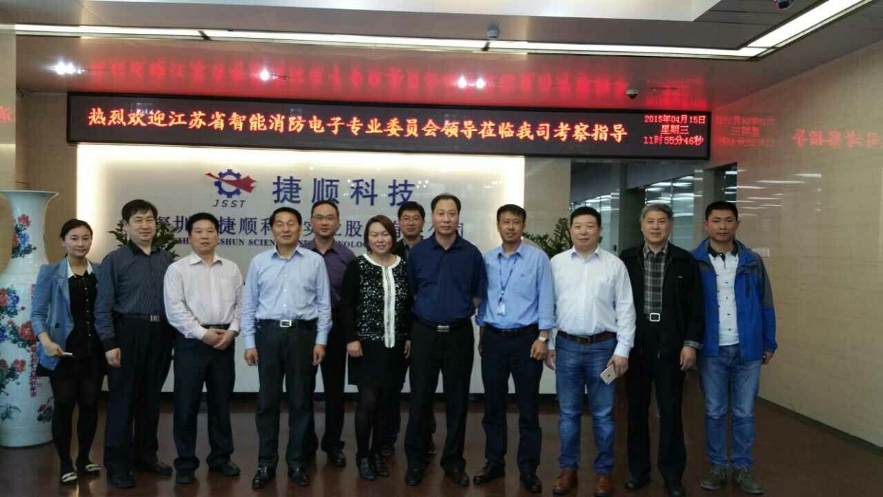 2015年4月15-16日,江蘇省安裝行業協會智能消防電子分會到深圳市捷順科技實業股份有限公司考察工作。參加考察的有中國安裝協會智能化與消防工程分會會長、江蘇省安裝行業協會智能消防電子分會會長、江蘇南工科技集團有限公司總經理陳曉;深圳市捷順科技實業股份有限公司總經辦業務總監何軍、向世榮;江蘇省安裝行業協會智能消防電子分會副會長周振谷、張慶松、肖忠海、羅山德;分會常務副秘書長席天陽;副秘書長祖詠、余晶;專家委員會副主任葉浩生等。