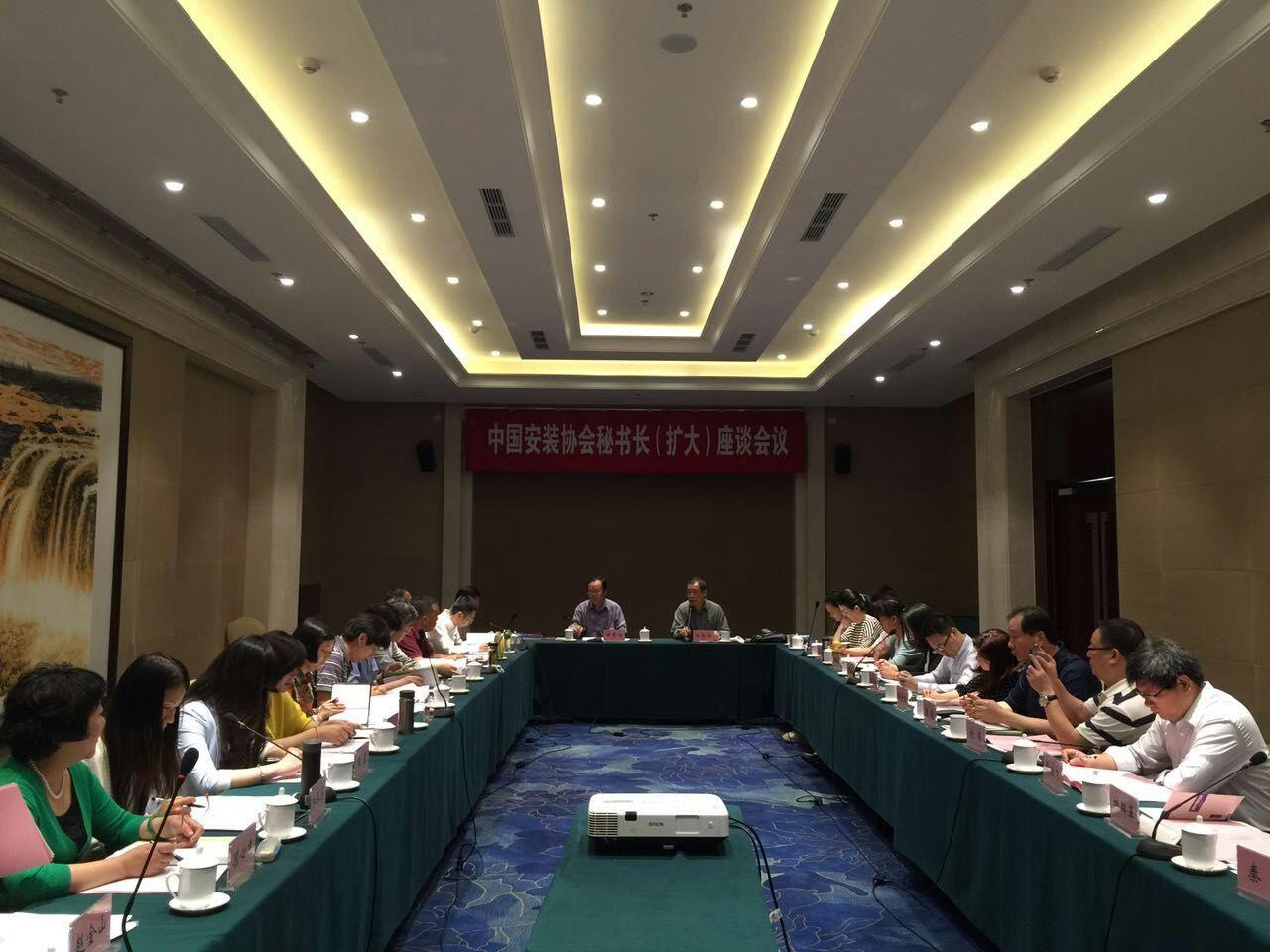 2015年5月20日,中國安裝協會秘書長擴大會議在北京職工之家召開。參加會議的有中國安裝協會專職副會長田秀增、副會長兼秘書長楊存成、副秘書長兼辦公室主任顧心建、辦公室副主任趙金山;中國安裝協會智能化與消防工程分會會長、江蘇南工科技集團有限公司總經理陳曉;中國安裝協會智能化與消防工程分會副會長劉偉、黃洪飛、副秘書長壽大云、崔劍茹、辦公室主任蘇媛媛;深圳市高技能人才實訓管理服務中心主任張自忠、北京市工貿技師學院主任韓嘉鑫、深圳市松大科技有限公司營銷總監劉群革;相關省、市安裝協會秘書長等40多人。