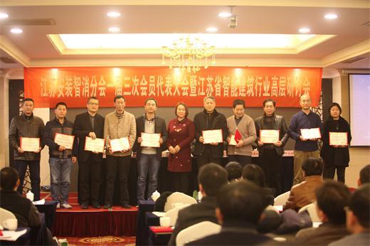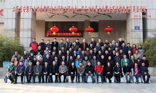 2015年12月18日,江蘇省安裝行業協會智能化與消防工程分會一屆三次會員代表 大會暨江蘇省智能建筑高層論壇在南京珍寶假日大酒店隆重召開。參加會議的有江蘇省安裝行業協會會長鄒金林;中國安裝協會智能化與消防工程分會會長、江蘇省安裝行業協會智能化與消防工程分會會長陳曉;分會常務副會長吳星紅、副會長劉昌華、周蓉蓉、顧永松、陳曦、管清寶、陳水金、徐本裕、李旻、肖忠海、袁勇;分會常務副秘書長席天陽、副秘書長王建明、祖詠、余晶;專家委副主任葉浩生、萬里遠;江蘇南工科技集團有限公司副總經理陳俊樺及專家和會員單位代表等180多人。