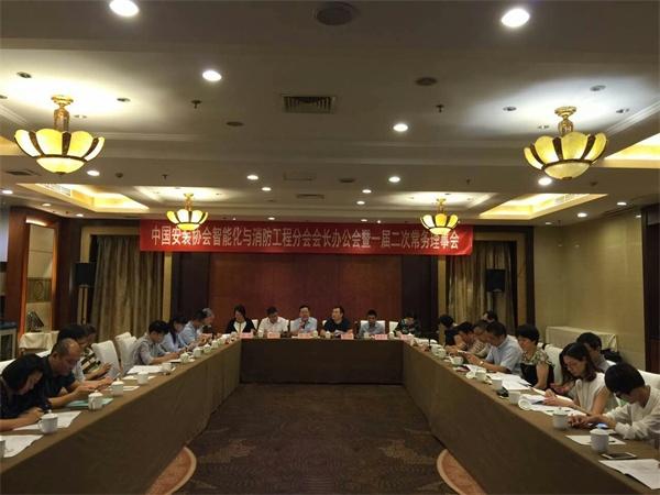 2016年9月9日,分會會長辦公會暨一屆二次常務理事會在南京新世紀大酒店召開。參加會議的有中國安裝協會智能化與消防工程分會會長陳曉,副會長劉偉、陸東輝、歐霖杰、吳星紅、周蓉蓉、黃洪飛,秘書長、江蘇南工科技集團有限公司常務副總經理夏鳴,副秘書長王建明、祖詠、崔劍茹,專家委員葉浩生、萬里遠及常務理事會理事等40多人。