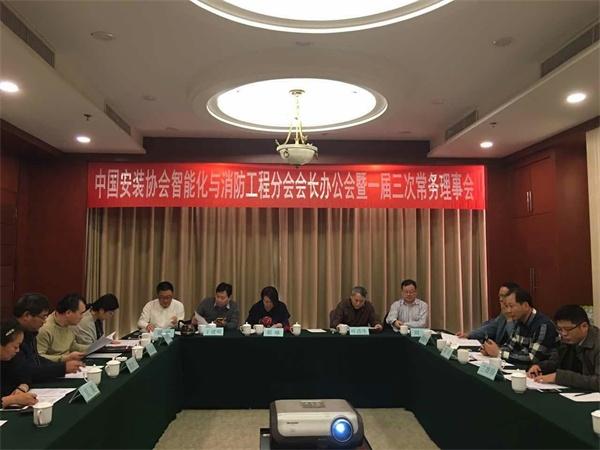 2016年11月24日,中國安裝協會智能化與消防工程分會會長辦公會暨一屆三次常務理事會在南京召開。參加會議的有中國安裝協會智能化與消防工程分會會長陳曉,副會長吳星紅、劉偉、陸東輝、周蓉蓉、黃洪飛,秘書長夏鳴,副秘書長王建明、祖詠、崔劍茹,辦公室主任蘇媛媛,專家葉浩生、吳英、黃敏桐、萬里遠及常務理事會等30多人。
