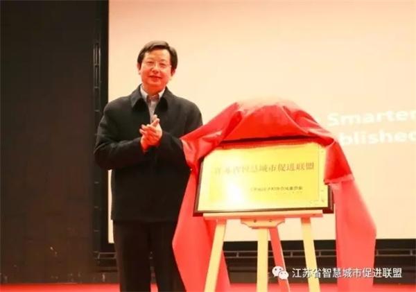 江蘇省經濟和信息化委員會副主任胡學同為江蘇省智慧城市促進聯盟揭牌。