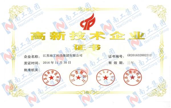 2016年11月30日,集團榮獲國家級高新技術企業稱號。